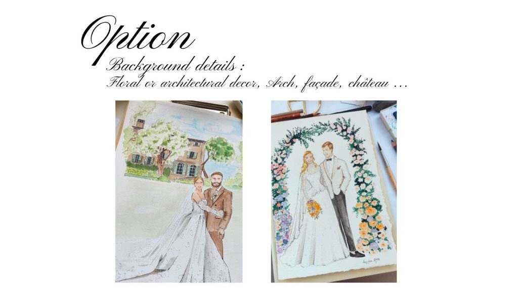 Entièrement peint à la main, il capture la personnalité, l’émotion et l’élégance de votre moment unique.